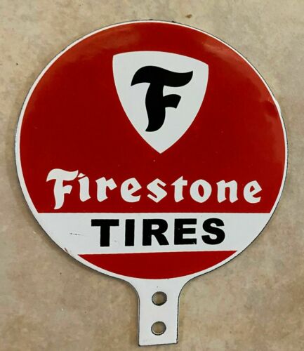 Title (ebay affiliate link): VINTAGE FIRESTONE TIRES 5" PORCELAIN METAL TIRE GASOLINE OIL LICENSE TOPPER SIGN