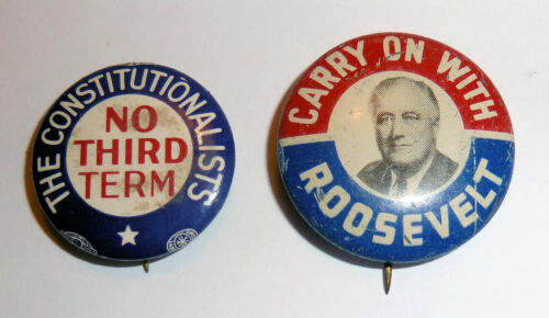 Title (ebay affiliate link): 2 Political PIN BACKS 1940 Franklin ROOSEVELT Pro & Con 3rd Term