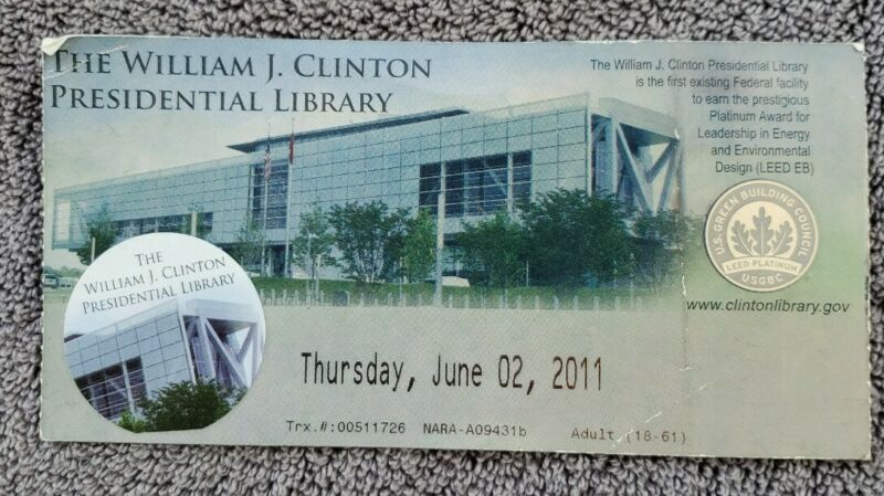 Title (ebay affiliate link): RARE 2011 PRESIDENT Bill CLINTON Presidential Library Ticket & Admission Sticker