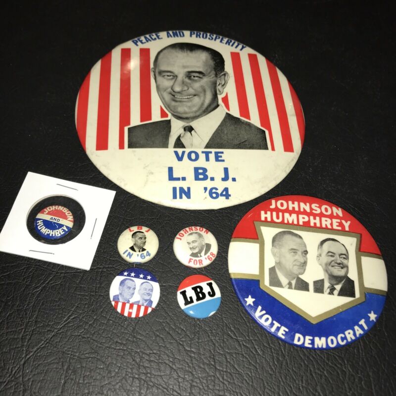 Title (ebay affiliate link): Vtg 1964 LYNDON JOHNSON HUMPHREY PRESIDENTIAL CAMPAIGN PINBACK PIN BUTTON LOT K7