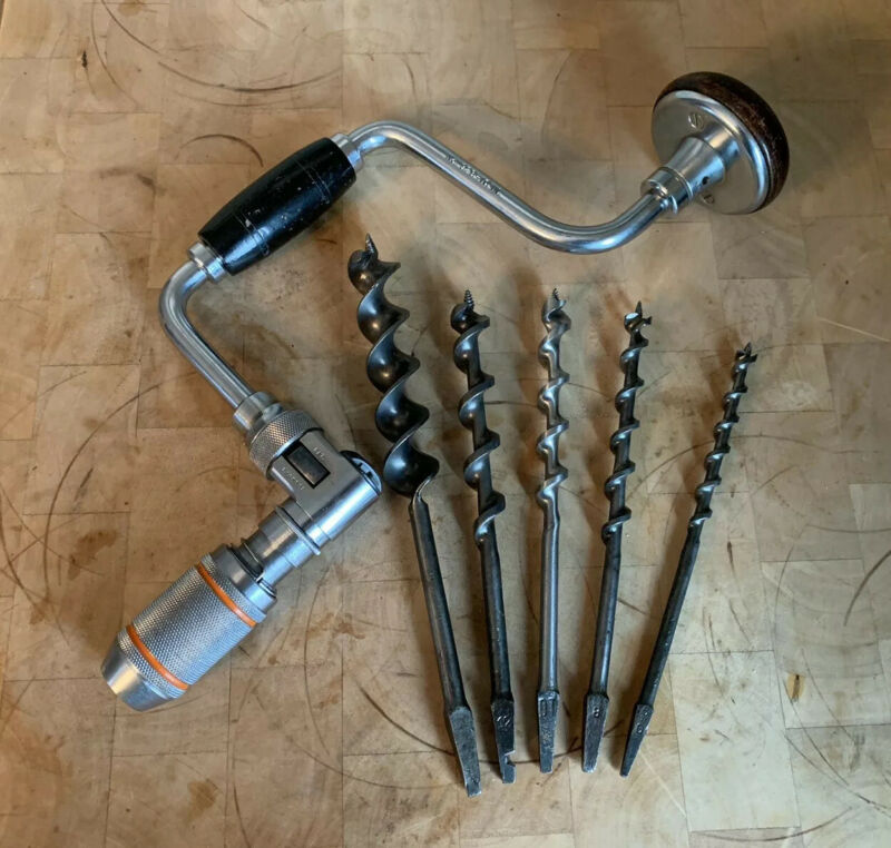 Title (ebay affiliate link): Vintage STANLEY No. 923-10 Ratcheting Reversible Drill Auger Brace With Bits