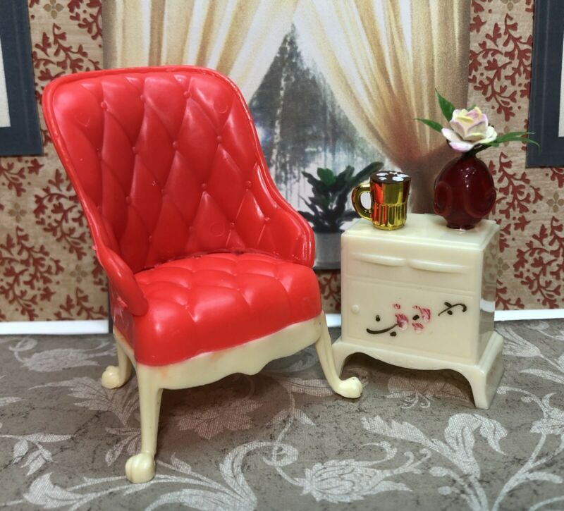 Marx Little Hostess CHAIR Plasco TABLE Vintage Dollhouse Furniture Renwal 1:16