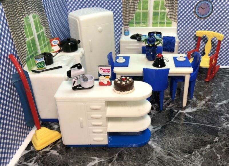 Plasco COMPLETE KITCHEN Vintage Tin Dollhouse Furniture Renwal Ideal Plastic