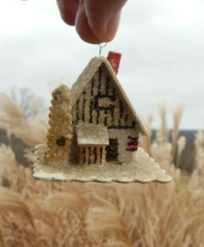 Antique Vntg Putz House Xmas Ornament Czechoslovakia Mica Cardboard Czech 1.75"