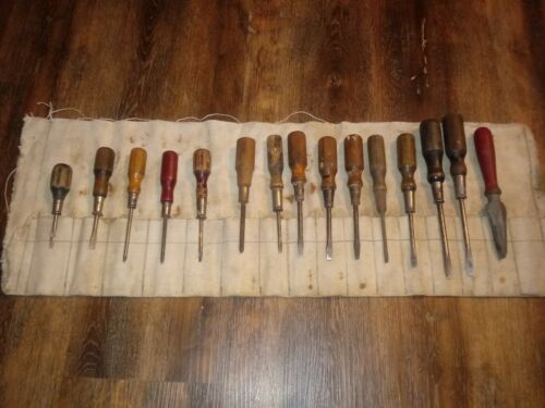 Title (ebay affiliate link): 14 LOT EARLY 1900s WOOD HANDLE SCREWDRIVERS-FLAT/PHILLIPS/CANVAS HOLDER-STANLEY