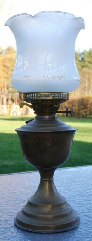 Title (ebay affiliate link): Brass oil lamp with twin wick Duplex burner & glass shade