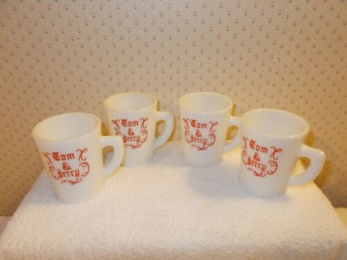 Title (ebay affiliate link): Vintage "Tom and Jerry" Milk Glass Mugs 4 Cups McKee Red Lettering