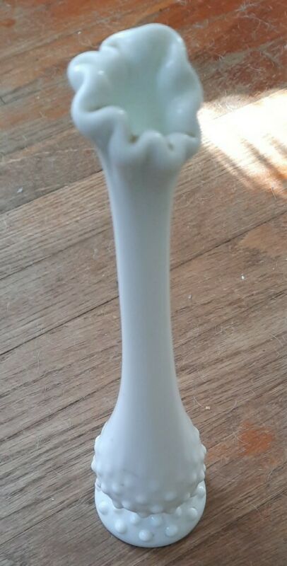 Title (ebay affiliate link): Fenton Vintage Slender White Milk Glass Vase Crimped Ruffled Edge