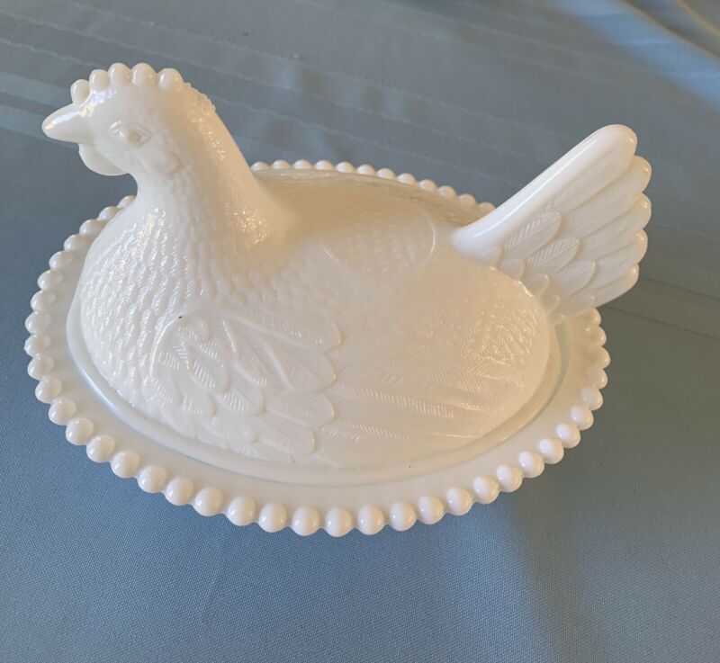 Indiana Milk Glass White Chicken Hen Covered Dish