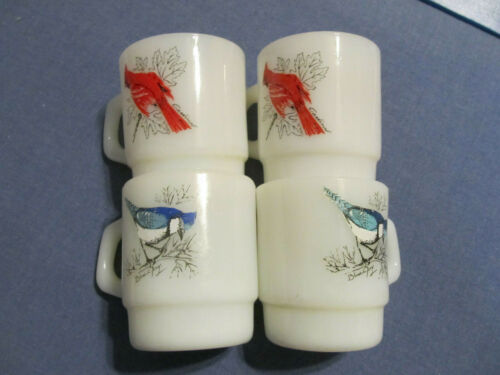 Title (ebay affiliate link): Vtg 4 Fire King milk glass song bird stack able mugs-cardinal, blue Jay