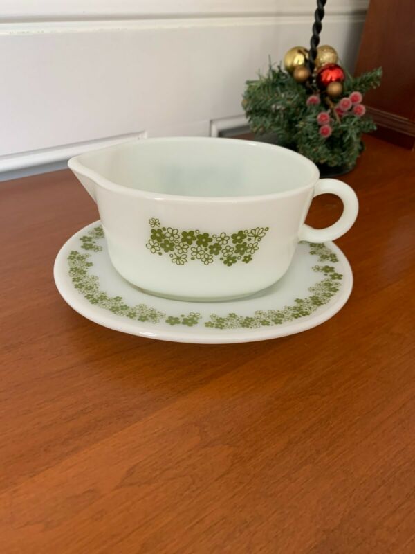 Title (ebay affiliate link): Vintage Pyrex Corelle Crazy Daisy Spring Blossom Green Gravy Boat & Liner Plate