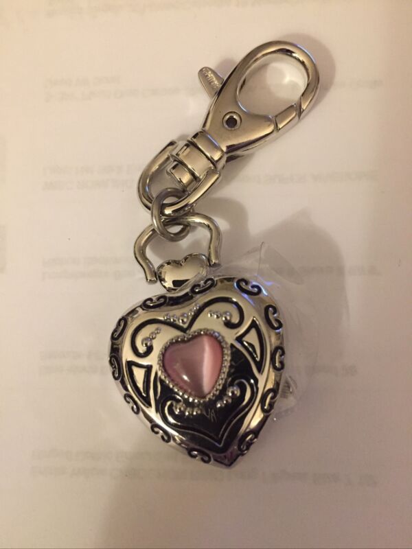 Vintage AVON Heart Watch Keychain Silvertone (Battery Required)