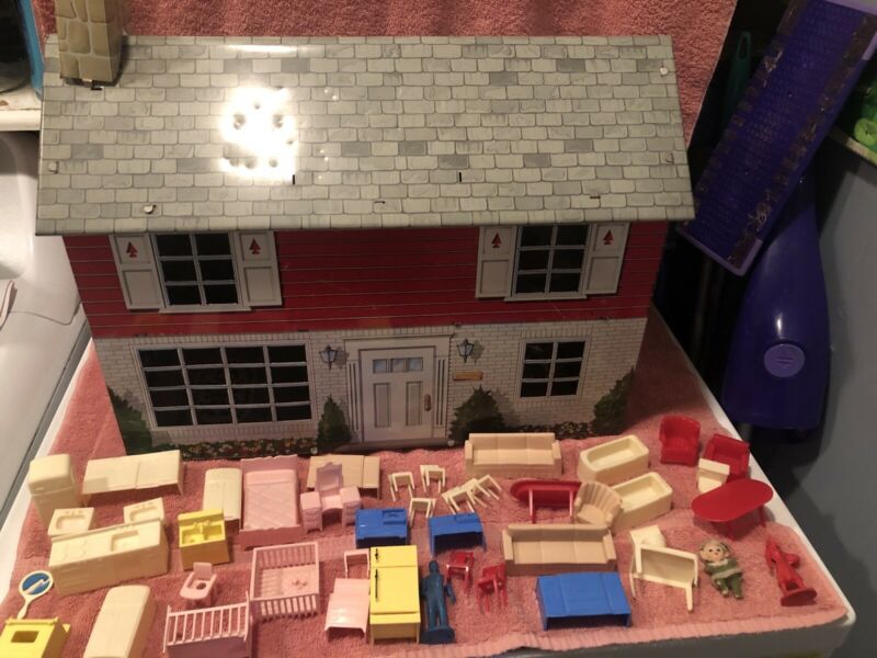 Title (ebay affiliate link): Mar Toys Vintage Tin Doll House Two Story with A lot Plastic Furniture