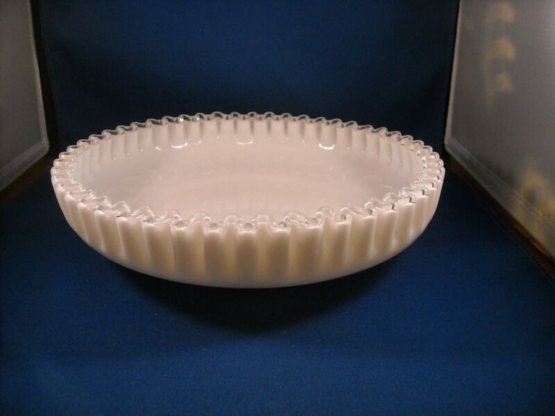 FENTON Silvercrest White Milk Glass Large Shallow Low Bowl Crimped Edge
