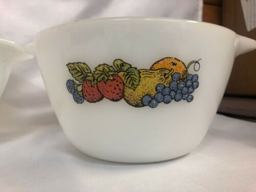 Vintage Anchor Hocking Fire King Milk Glass Nesting Mixing Bowls Fruit Harvest