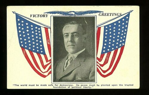Title (ebay affiliate link): PRES. WOODROW WILSON VICTORY GREETINGS PICTURE POSTCARD