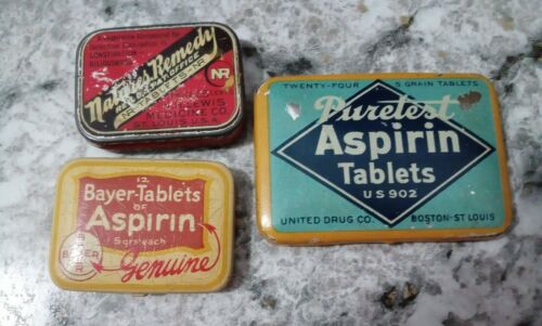 Title (ebay affiliate link): 3 Vintage Advertising Medicine Pocket Tins Purtest Aspirin Nature Remedy Bayer