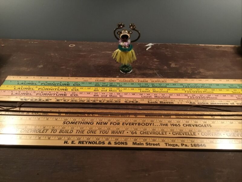 Lot of 9 Vintage wood promotional advertising YARDSTICKS ~ 1/4" ~ Chevrolet