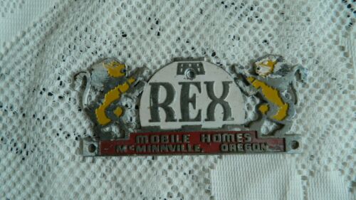 VINTAGE REX MOBILE HOMES McMINNVILLE OREGON ADVERTISING LOGO SMALL METAL SIGN