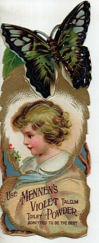 Title (ebay affiliate link): 70389. Trade Card Bookmark ca 1880 Mennen''s Violet Talcum Toilet Powder embossed