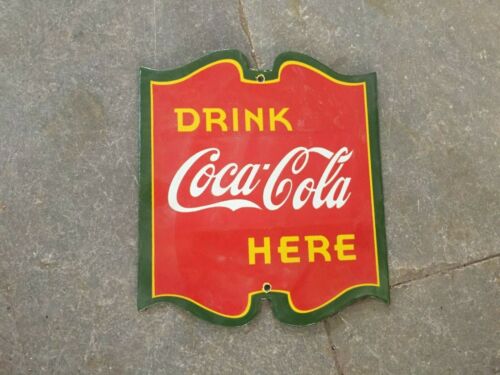 Title (ebay affiliate link): Porcelain Drink Coca Cola Here Enamel Sign 7" x 8" inches