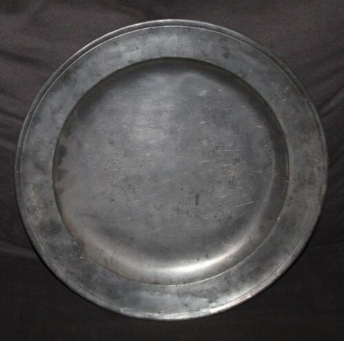 LARGE Antique PRIMITIVE Pewter Charger lot l