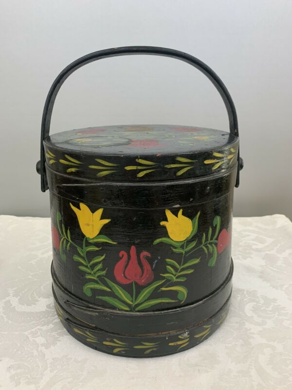 Title (ebay affiliate link): Vintage Antique Wood Firkin Sugar Bucket Hand Painted
