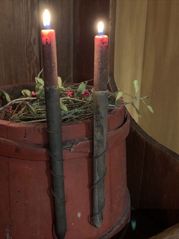 Lot 2 Early Lighting Prim Tin Candle Molds Over Cupboard Door Chairs Buckets