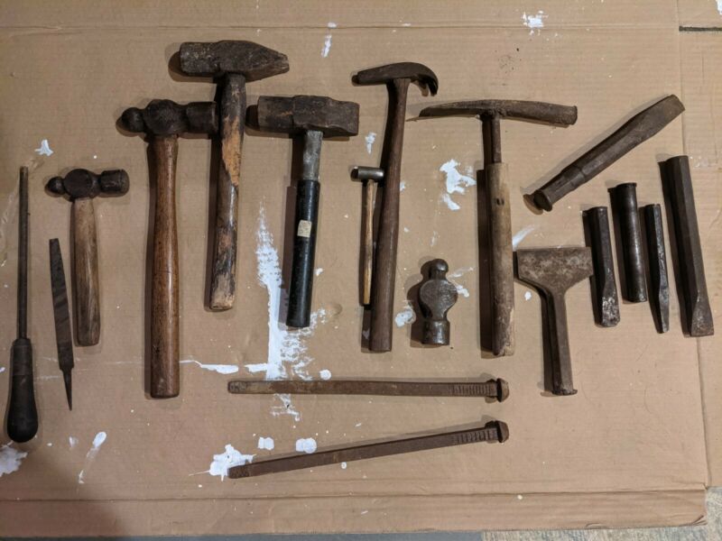 blacksmith cross pein straight pein ball pein chisels files anvil forge vintage