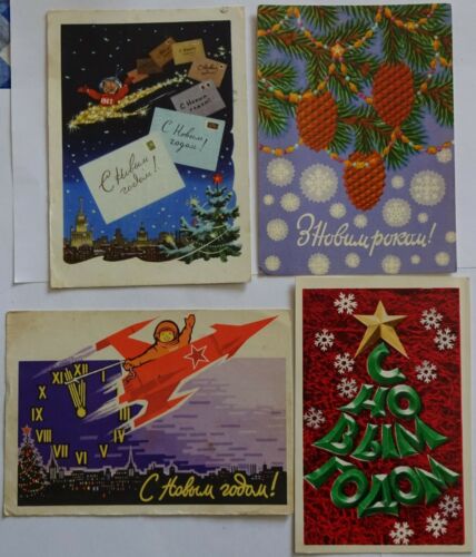 Title (ebay affiliate link): 4 postcards USSR with the New Year. Rocket, astronaut