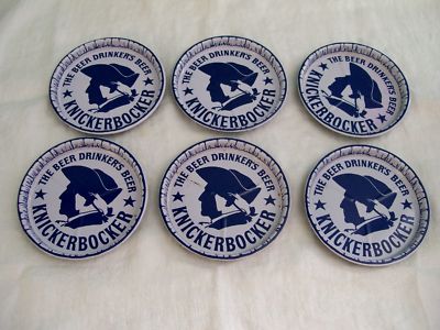 Title (ebay affiliate link): 6 Vintage Tin KNICKERBOCKER Beer Coasters~Blue&White~NR