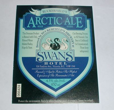 CANADA BEER LABEL ARTIC BUCKERFIELD BREWERY VICTORIA