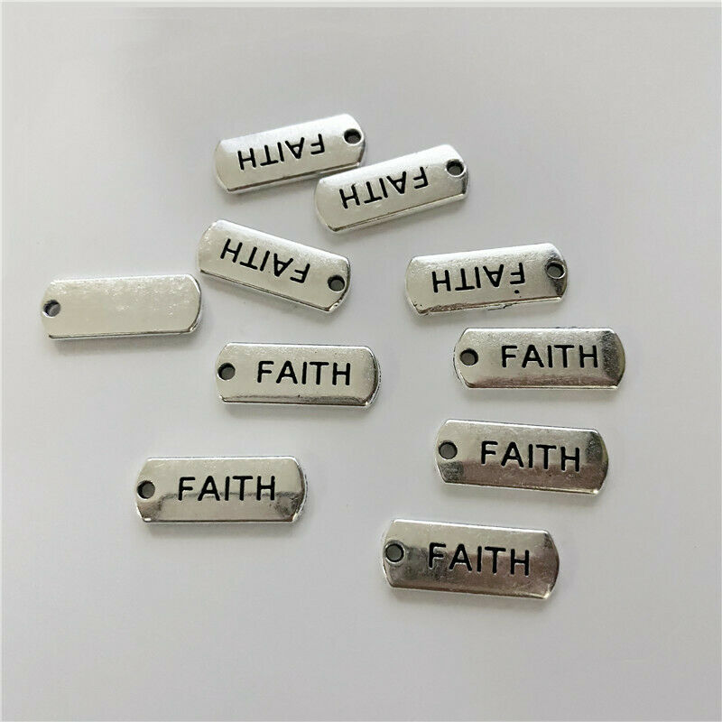 Title (ebay affiliate link): 10pcs 21x8mm Faith Charms Antique Silver Tone Making Jewelry