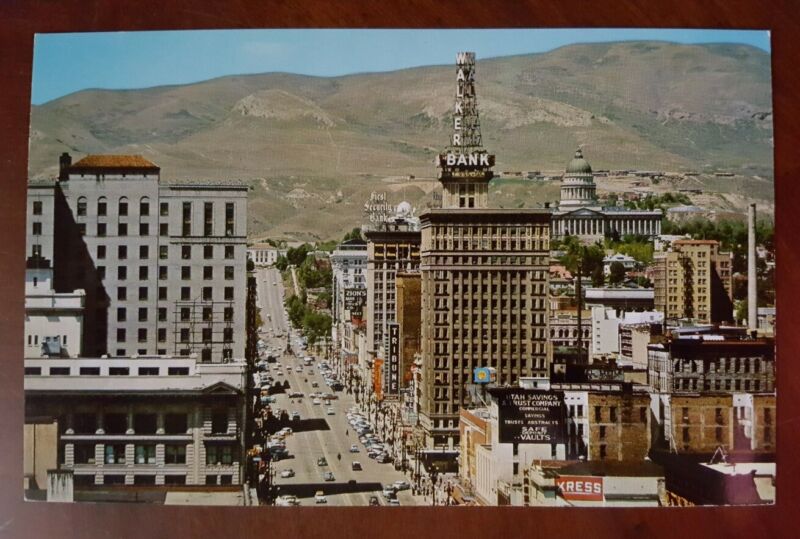 Title (ebay affiliate link): VINTAGE SALT LAKE CITY UTAH MAIN STREET 3 BANKS WALKER BANK TRIBUNE BLDG KRESS