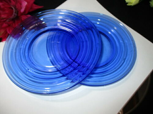 Title (ebay affiliate link): MODERNTONE 2 COBALT BLUE DEPRESSION GLASS TEA BISCUIT BREAD PLATES 6"