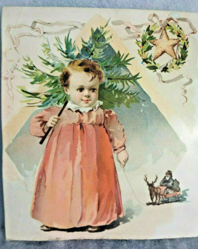 Title (ebay affiliate link): Victorian Lion Coffe Christmas Trade Card /Little Girl Pulling Santa Sleigh