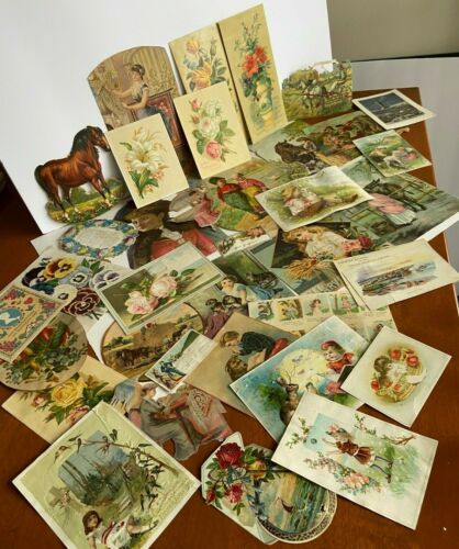 Title (ebay affiliate link): 38 Piece Lot of Antique/Mostly Victorian Era Ephemera Die Cuts Advertising