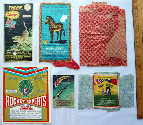 Title (ebay affiliate link): Vtg Fireworks 5 Labels Rocket_Navy Brand_Tiger_Zebra_Rocket Experts + Tissue Ins