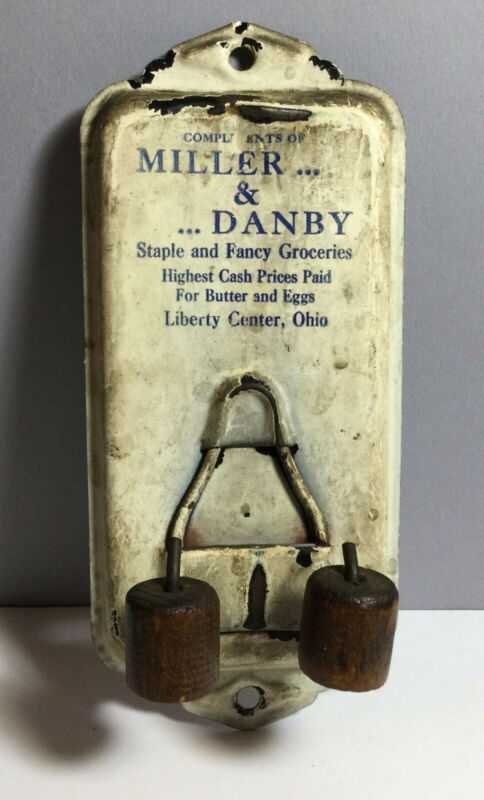 Title (ebay affiliate link): ANTIQUE ADV TIN BROOM HOLDER MILLER & DANBY LIBERTY CENTER OH FANCY GROCERIES