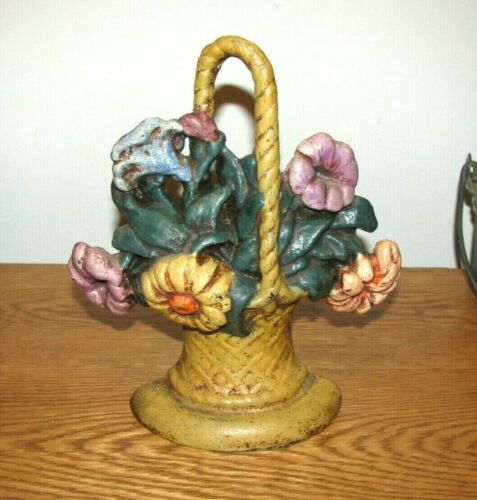 ANTIQUE CAST DOORSTOP BASKET of FLOWERS / Not Hubley