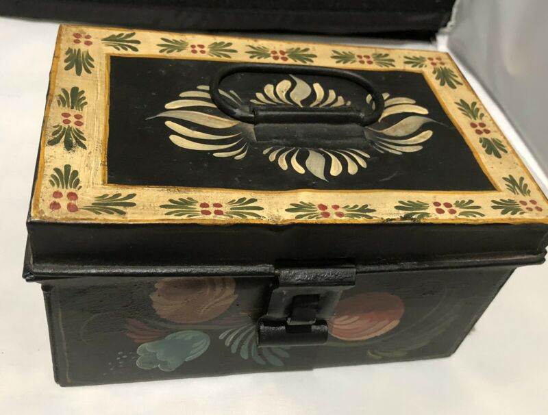 Antique Tin Tole Box. Handpainted. 8x5x4.25