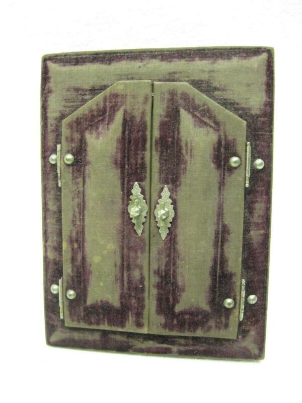 Double Door Easel Back Cabinet Card Velvet Photo Picture Frame Old Vtg Victorian