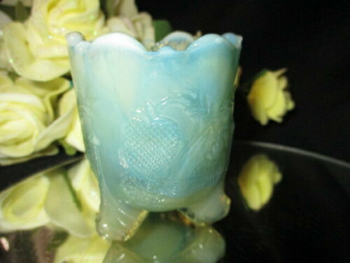 ANTIQUE STRAWBERRY EAPG VASELINE GLASS TOOTHPICK HOLDER