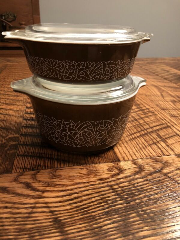 Title (ebay affiliate link): Vintage Pyrex Tan & Brown WOODLAND (2) Casserole Dishes 473-B & 471-B With Lids