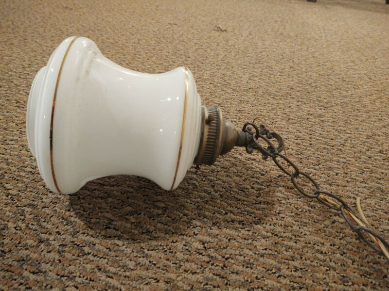 Antique hanging milk glass lamp shade w/ fixture