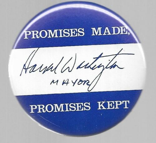 Title (ebay affiliate link): CHICAGO MAYOR HAROLD WASHINGTON PROMISES MADE, PROMISES KEPT POLITICAL PIN