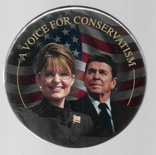 Title (ebay affiliate link): SARAH PALIN, RONALD REAGAN A VOICE FOR CONSERVATISM POLITICAL PIN