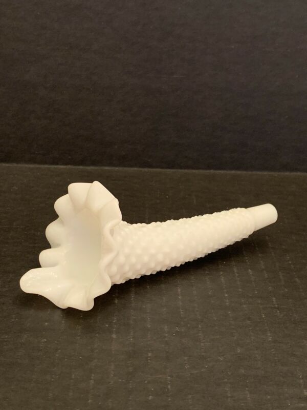 Fenton White Milk Glass Epergne 6 Inch Replacement Ruffled Hobnail Horn
