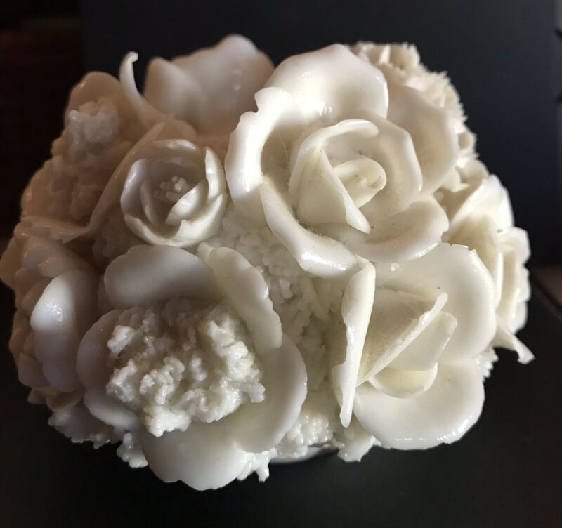 Floral Porcelain / Milk Glass Candle Holder, Japan, White Flowers, Roses Vintage