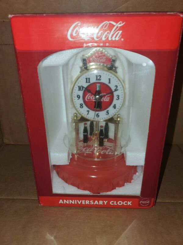 Title (ebay affiliate link): Coca-Cola Coke Bottle Anniversary Dome Clock 7" High Revolving NIB Vintage